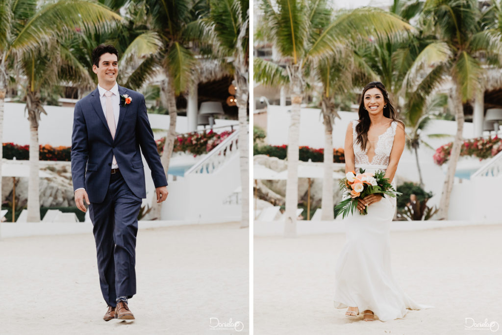 This was my very first wedding shot at Mar del Cabo so I was beyond excited. There is something beautiful and thrilling about the first time you take photos in a spot. Everything seems fresh and creativity just explodes! I definitely loved the new colors. There is so much white and blue that looks gorgeous mixed with the pink flowers everywhere. It almost felt like a piece of Greece had fallen into Cabo.